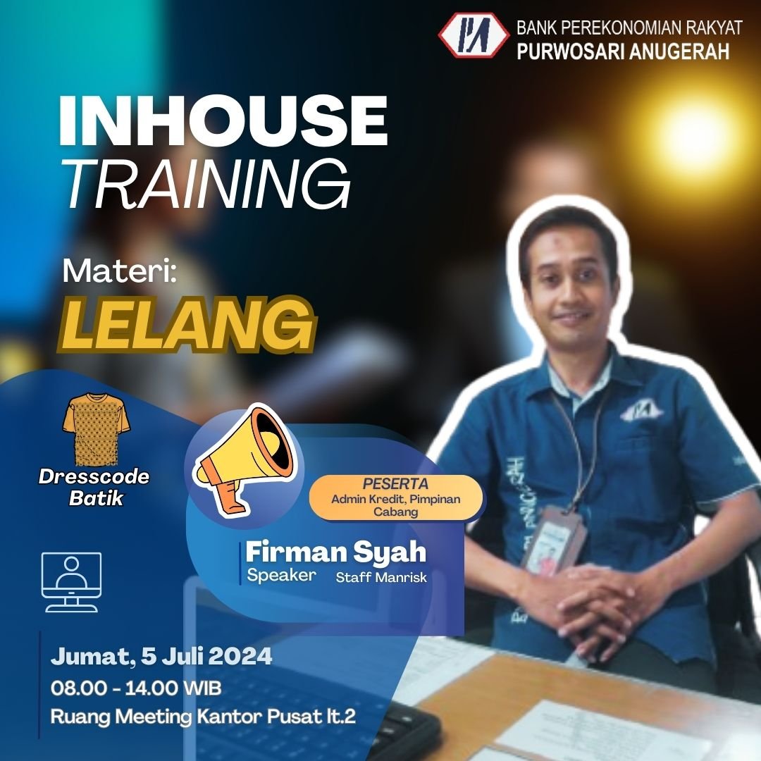 Inhouse Training dengan topik "Lelang" yang diikuti oleh peserta dari Pimpinan Cabang dan Admin Kredit.
