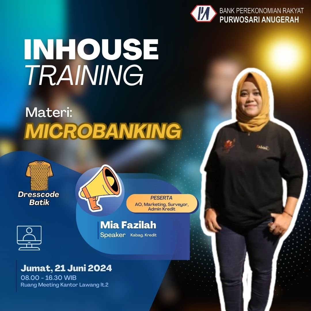 Inhouse Training dengan topik "Microbanking" yang diikuti oleh peserta dari Account Officer, Marketing, Surveyor dan Admin Kredit.