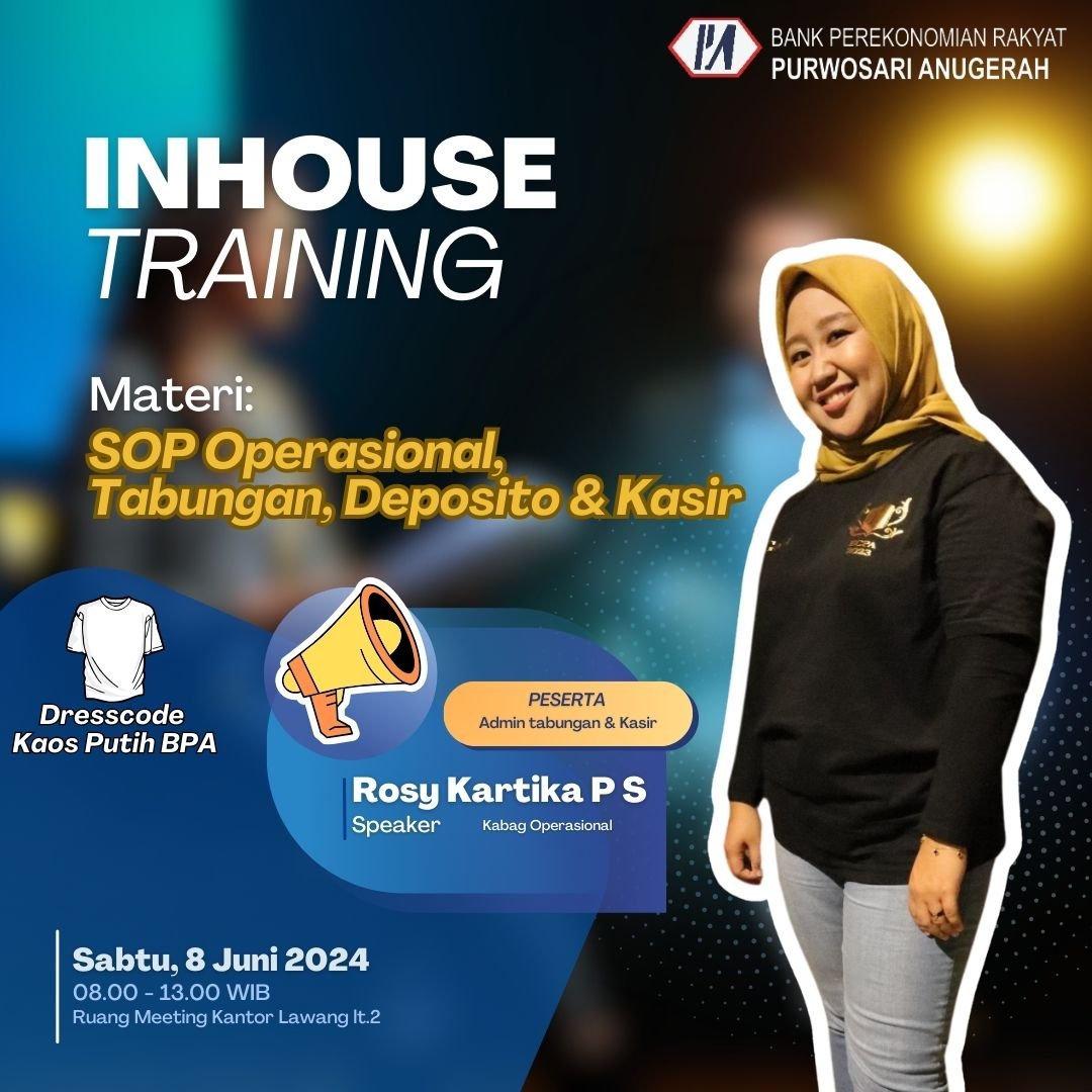 Inhouse Training dengan topik "SOP Operasional, Tabungan, Deposito & Kasir" yang diikuti oleh peserta dari Admin Tabungan & Kasir.